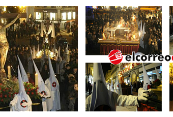 Ya os dije que creía que no iba a tener suerte con poder ver las procesiones (para un año que me remango)... El caso es, que el jueves me acerqué pero mi maldita cámara me la jugó y no me salió ni una foto... así que he tirado de El Correo. Y el viernes fue suspendida por lluvia... en fin una penita.