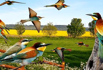 A cualquier hora del día -incluso a algunas de la noche- llueve sobre los campos, desde estos cielos mediterráneos, el trino transparente y sencillo de los abejarucos en paso. Cambian nuestro invierno por el generoso verano del África subsahariana.