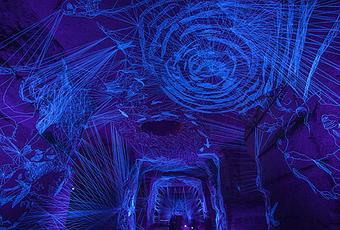Hoy en Tutéate nos maravillamos con la última exposición del artista francés Julien Salaud, instalada en el Museo de Arte Contemporáneo de Hezliya, la cuarta de su serie “Stellar Cave”. Se trata de una gran obra hecha a partir de hilo de algodón bañado en pintura ultravioleta que ha sido laboriosamente enrollado alrededor de millones de clavos siguiendo la técnica de “nail string art” para acabar dando forma a multitud de animales y criaturas mitológicas que se ven en la oscuridad.