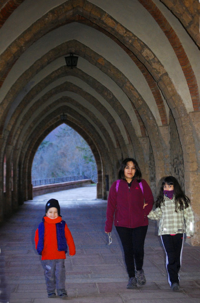 Gloria y Aintzane paseando por los alrededores del monasterio. Estos paisajes son mas llamativos que los de nuestra zona de residencia.