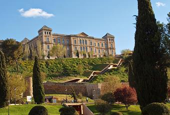 Vista de la Diputación Provincial de Toledo y del acceso a las escaleras mecánicas desde Santo Domingo el Antiguo.