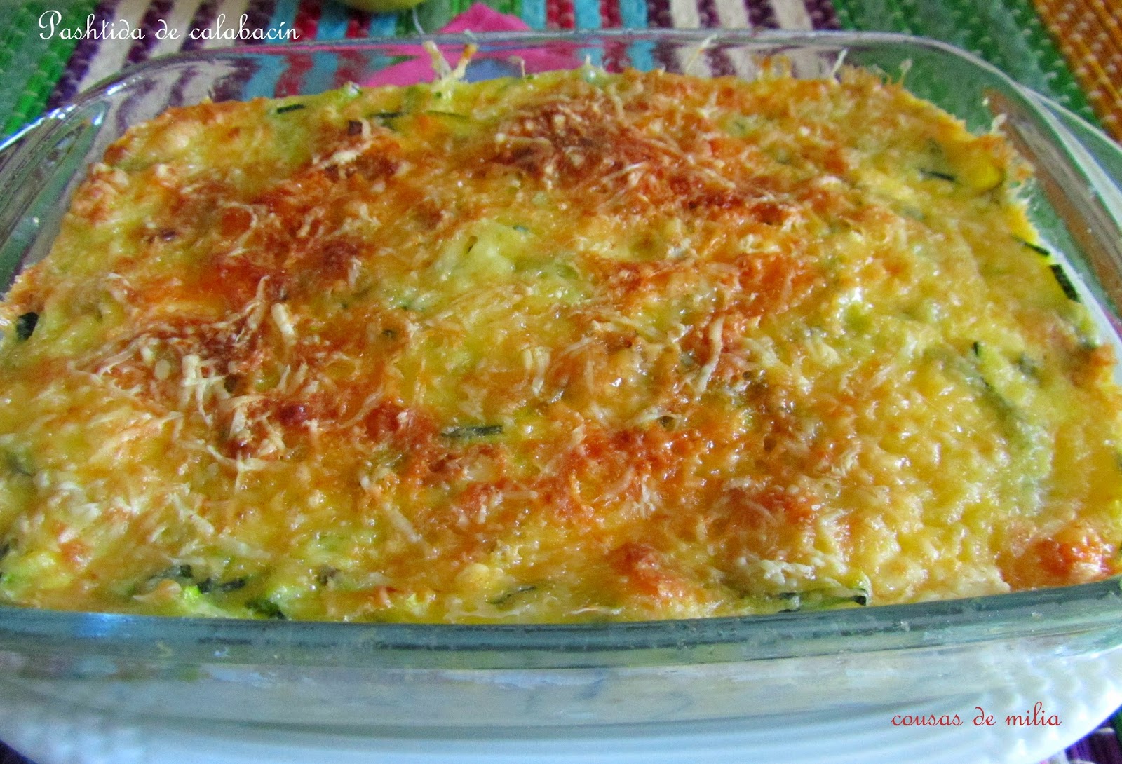 Sigo con mi dieta vegetariana con el fin de corregir excesos y de paso consumir las considerables cantidades de vegetales que pueblan mi cocina ¡que pena que todo se concentre en tan poco tiempo! Con lo que disfrutaría yo el resto del año con estas ricas verduras ¡...que mal organizada está esta producción...!La pashtida es un plato tradicional judío compuesto por huevos y queso, con verdura o carne o una combinación de ambas. Yo casi siempre lo hago con verduras y en esta época... en que los calabacines producen a destajo, ¿de que iba a ser? Tengo que confesar que me encanta y que me tengo que controlar para no pasarme, la receta que en su origen era de una revista ha ido evolucionando a mi gusto y ahora es... a mi manera.