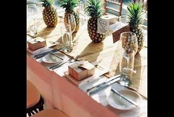 Piñas naturales utilizadas como centros de mesa para una