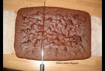 La porción de bizcocho que se saca, la he aprovechado para hacer el cojincillo donde irá el reloj, tal como se ve abajo.
