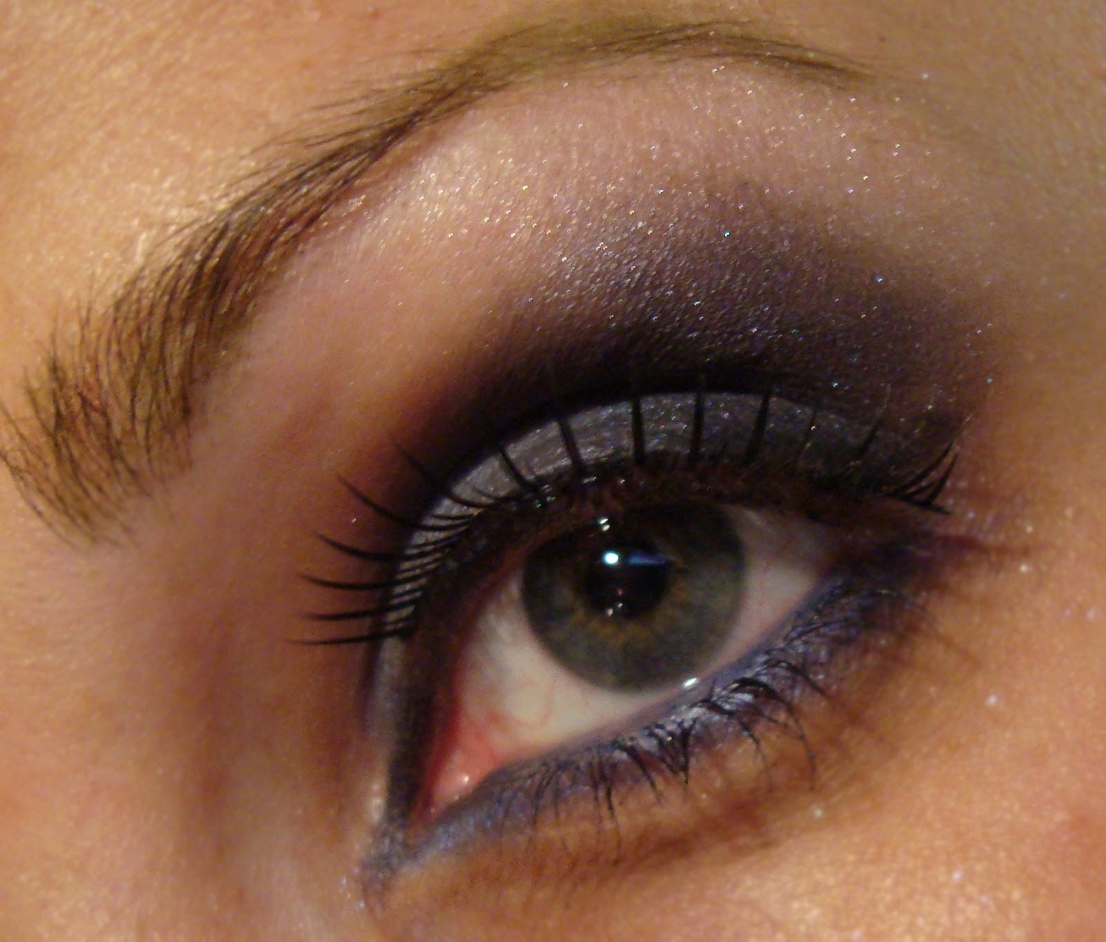 Hago una linea con un lápiz color azul marino en el párpado superior. Con la mima sombra (Atlantic), delineo con cuidado la linea de las pestañas inferiores.