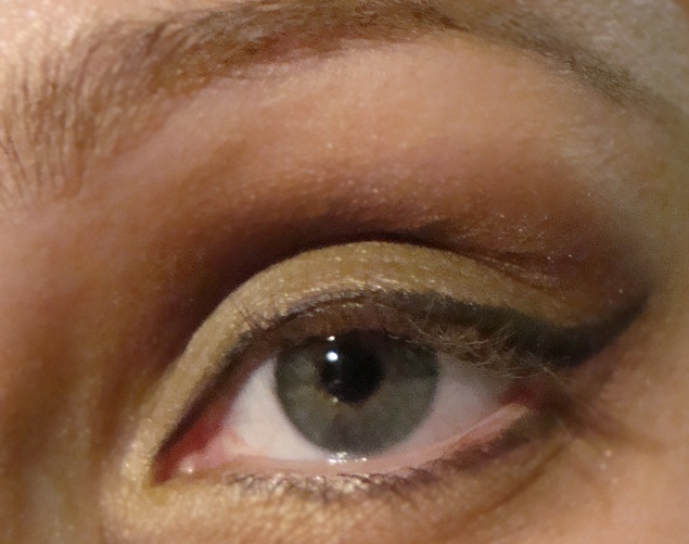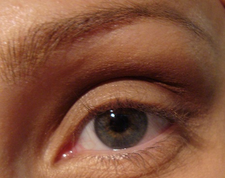 Con un lápiz ( o jumbo, que es lo que yo he utilizado) de color marrón oscurito dibujo el pliegue del ojo con forma de "C".