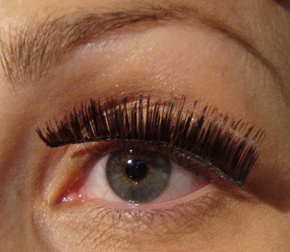 1.Lo primero que hago es rizar mis pestañas naturales para subirlas un poco y luego no se note la diferencia entre las naturales y las postizas. A continuación aplico rimel en mis pestañas naturales.2.