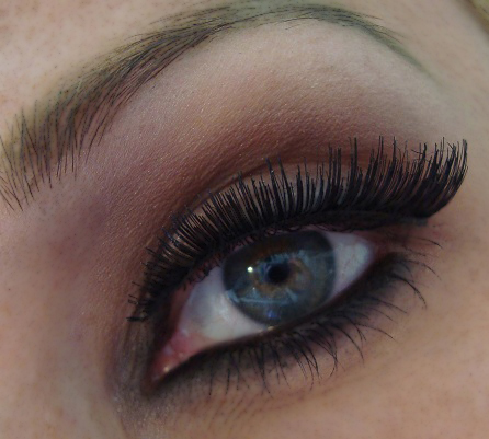 Vuelvo a trazar una linea con lápiz de ojos negro. En las pestañas inferiores trazo una linea con lápiz, incluyendo el lagrimal. Luego difumino. En la foto de abajo, aplico sombra negra encima y difumino. Relleno también el interior del ojo.Rizo, aplico eyeliner, y para crear un look más sofisticado, agrego unas pestañas postizas.