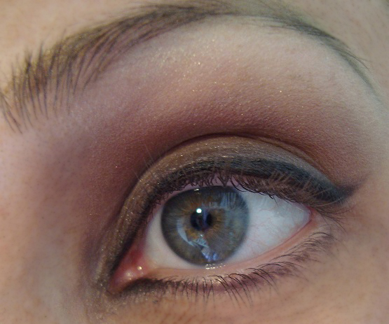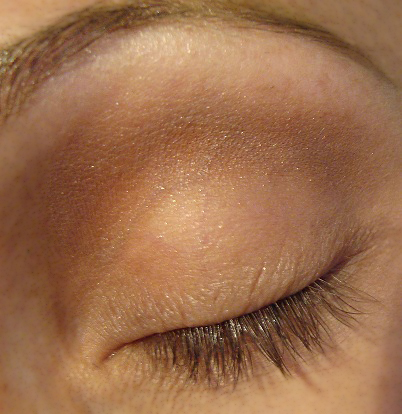 Aplico una sombra del mismo tono de la piel para matizarla. A continuación trazo una linea suave en la linea de las pestañas y difumino muy bien hasta que se pierda el trazo. En la zona del lagrimal le doy profundidad con el mismo difuminado.
