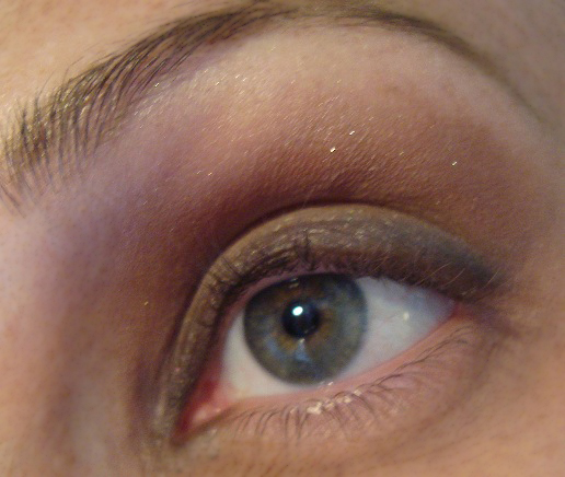 ··················Aplico una corrección suave en tono marrón nude en el pliegue del ojo. No utilizo lápiz. La corrección se hace con la misma sombra. Esta vez al revés. Ensancho en el interior solamente. En el dibujo lo veréis mejor.