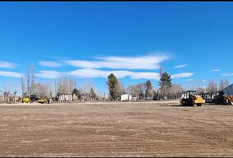 Ya iniciaron los trabajos de movimiento de suelo, paso previo a la colocación del césped sintético. La cancha de fútbol estará próxima al gimnasio municipal.
