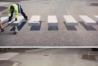 Se trata de pintar un trampantojo en un paso de cebra, engañando al cerebro para que los conductores frenen. La idea se aplicó en Ísafjörður, un pequeño pueblo pesquero de Islandia (2.600 habitantes). Con esta ilusión óptica, se intenta para reducir la velocidad en las áreas más residenciales del municipio, así como la afluencia de curiosos, para ver y fotografiar el invento.