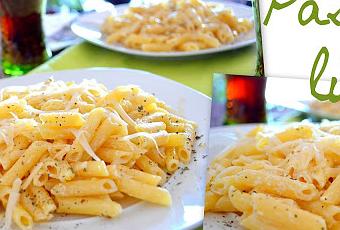 Ingredientes (2personas): 200g pasta corta, 1 limón, 25g de mantequilla salada, 100ml de nata liquida, 60g queso rallado, sal, albahaca, y pimienta recién molida.