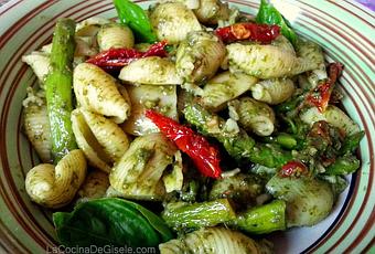 Una variante de la deliciosa pasta al pesto es la que se le añade esparragos y tomaticos secos. La preparación no lleva mucho trabajo, es super sencilla.