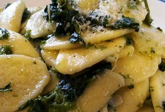 Espolvorear con parmesano rallado o ricotta salada, saltear y emplatar.