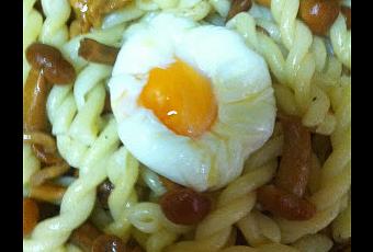 - Sirve la pasta con las setas y el huevo encima.