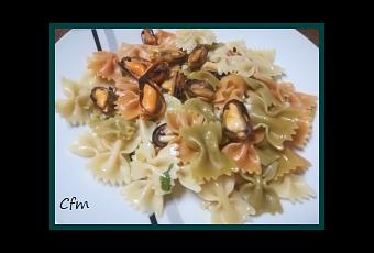 -Separamos la pasta del resto de ingedientes de la ensala y la calentamos al microondas-Hacemos en el microondas los mejillones siguiendo las instrucciones que vienen en el paqure-Mezclamos todo y añadimos un chorro de aceite-Removemos bien