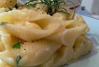 Volver a mezclar rápidamente, para que el queso funda con el calor de la pasta.
