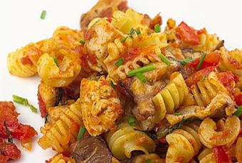 Buenos dĂas! llevabamos mucho tiempo sin subir una receta con pasta, en este caso es pasta con pollo y setas shitake, de las que sobraron de nuestras recetas orientales aunque podéis usar cualquier tipo de setas para esta receta, lo acompaĂąa una salsa de tomate con albahaca.