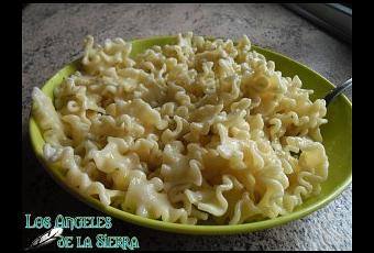 Cuando la pasta esté lista, la pondremos en un cuenco grande, echamos el queso y rápidamente lo mezclaremos todo. Como la pasta está caliente, el queso se fundirá.