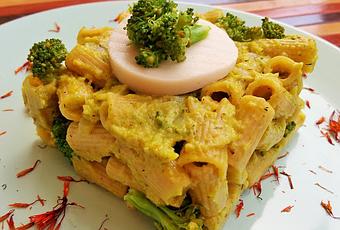 - Servimos la pasta con una rodaja de MozzaRisella y los ramilletes de brócoli que habíamos reservado.