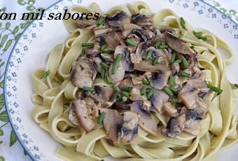 Yo, soy de pasta!!!...si amigos,si. Pero no de esa que guardan celosamente en las cajas fuertes de los bancos, no de la que derrochan sin consideración los de las tarjetas de crédito "opacas" y que además, no les cargan en sus correspondientes cuentas los días cinco de cada mes. Yo soy de la otra, de la que se pone en la cazuela cuando el agua está en ebullición, de la que cuando la cocinas tu vecina se pasa por tu casa con cualquier escusa por si la invitas a comer.....linguine, fettucine, penne, macarrones, espaguetis, espirales, margaritas, lazos......., toda una fiesta de tamaños y colores que nunca defraudan. Que mejor forma de empezar el otoño que esta salsa de champiñones que están de plena temporada.Feliz fin de semana a todos.Ingredientes: