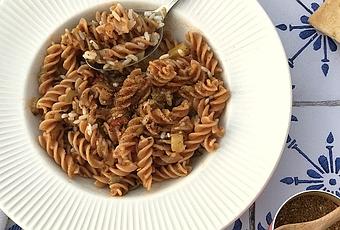Aunque yo he usado pasta de lentejas, sin gluten que compro en Mercadona, se puede hacer esta receta con otra pasta de legumbres o con pasta de trigo. Pero creo que es una manera diferente de incluir las legumbres en nuestra dieta y más sana no puede ser.