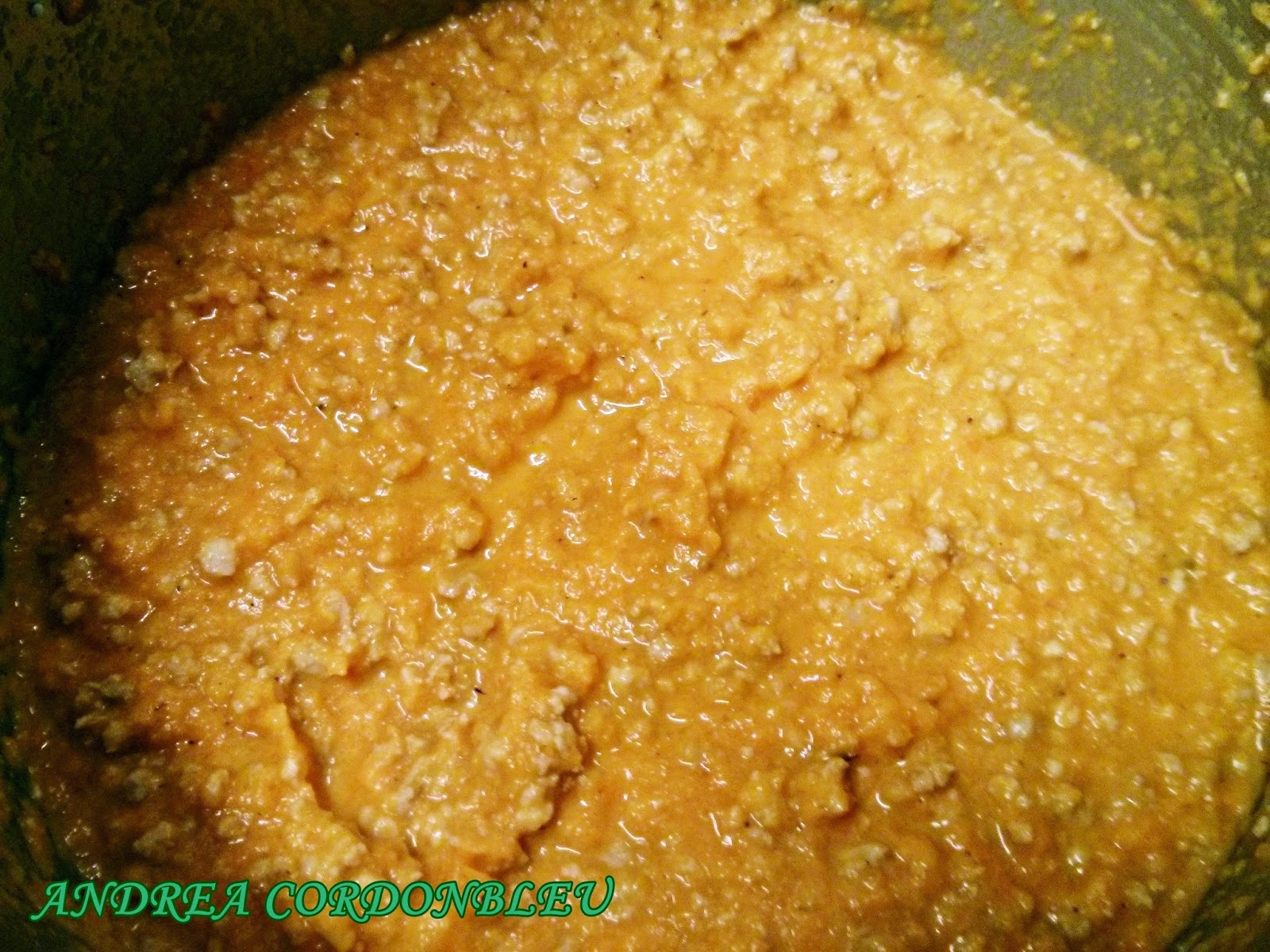 Para elaborar la boloñesa, se saltea un poco de cebolla, la zanahoria y el pimiento bien picados. Se añade el tomate cortado en dados (concassé). Se salpimienta y se tritura todo. Se saltea un poco la carne picada con aceite en una sartén y se incorpora a la salsa de tomate. Se cocina todo junto y se rectifica de nuevo de sal y pimienta.
