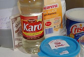 La glicerina, el sirope Karo, la esencia y la manteca Crisco....