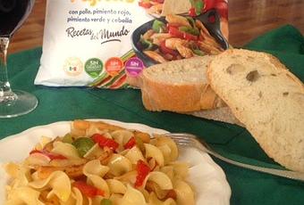 Esta receta es rápida, sencilla, buena y saludable! Una forma diferente de cocinar pasta y fajitas!! Es un plato sabroso y sin excesos de calorías. Para ello he utilizado una bolsa de relleno de fajitas de la marca MAHESO , Uno de esos recursos que es bueno tener en el congelador para un imprevisto o cena rápida. Normalmente se usan con tortitas que se venden en el súper y solo hay que calentarlas a la plancha o en el microondas, pero a mi me gusta también así.