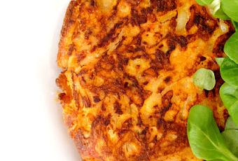 Pon una sartén al fuego con un chorrito de aceite y cuando esté humeante añade la mezcla de pasta y huevo. Cocínala durante unos minutos hasta que quede doradita y crujiente, y dale la vuelta.