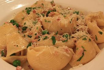 La de hoy no es mi favorita, ¡pero sí lo es de Almu! Esta pasta la conocemos desde pequeñas Hubo una época que cuando mi padre nos daba el capricho de comer fuera siempre nos preguntaba donde queríamos ir... ¡a Pinocchio! Un restoran italiano que tiene muchos establecimientos repartidos por todo Madrid. Íbamos mínimo una vez al mes, jejeje... ¡y siempre pedíamos lo mismo! Un plato que era un combo de tres pastas... esta primavera con nata, jamón y guisantes; unos fusilli con salsa de tomate y nata, y un tercer tipo que si os soy sincera ahora no recuerdo qué llevaban.