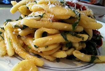 200 gr, de Pasta Maritati, 1 tomate mediano fresco, 1 manojo de rúcula o 150 gr., 1 diente de ajo, ricotta salada, sal y aceite.