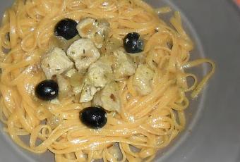 Los pobrecillos estuvieron perdidos en la despensa bastante tiempo, hasta que, un día, ojeando una revista, encontré una receta de contramuslos de pollo a la naranja que me inspiró a hacer el plato que hoy os traigo. La verdad es que los taglioline realmente sabían a naranja y quedaron con un precioso color anaranjado. Combinados con el resto de los ingredientes os puedo asegurar que estaban riquísimos.También os aseguro que para preparar este plato valdría cualquier tipo de pasta, aunque el sabor a naranja no sería tan pronunciado.