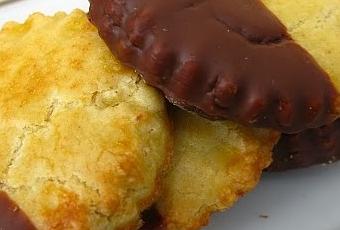 250 grs de harinaUn pellizco de salUn huevo grande o dos pequeños125 grs de mantequilla a temperatura ambiente125 grs de almendra molida90 g de azúcar 4 gotitas de esencia de almendra (opcional)Chocolate de cobertura Huevo batido o yema para pincelarlas