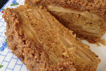 Donde mis papis comimos el sábado y llevé una tarta de arroz con leche que estaba hummm (de la que no pude hacer ni una foto porque fue un visto y no visto) y que repetiré para mejorarla y por supuesto para publicarla. Y donde los padres de la parte contratante llevé este pastel alemán de manzana.Tanto ayer en la comida y en el curro como hoy en patchwork cuando he soltado "pastel alemán de manzana" toda la gente ha contestado "strudel¡¡" pues no, esto no es un strudel.