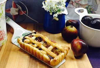 Pastel de brevas crujiente. Un dulce de brevas crujiente para asegurar sonrisas en la mesa, preparado en pastelitos de ración, … también podemos sacar el molde grande y con la lámina de hojaldre forrarlo y sacar una tarta a repartir, pero … con mi propuesta, nos evitamos problemas, que en casa somos todos de buen comer y cuando vemos algo tan rico, nos ataca la ansiedad y se crispa un poco el ambiente, … si la que reparte distorsiona accidentalmente el mundo de las medidas o tiene día torpe (que todo puede ser) y tarda más de la cuenta en cortar el dulce, ya tenemos para cuando llega el café: ración de morros.