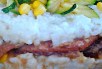 - 1 lata de maíz dulce y 1 calabacin mediano cortado en juliana con mandolina .