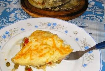 Ingredientes:1 cebolla2 ajos1 pimiento rojo1 calabacín200 gr de arroz basmaticaldo de pollo2 vasos de nata80 gr de mozarella rallada3 huevosaceite de olivasalpimienta