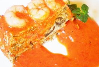 Ingredientes para 8 personas: 3 berenjenas 400 gr. de gamba pelada 6 huevos 250 cc. de crema de leche sal, pimienta aceite de oliva virgen extra