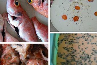Ponemos nuestro caldo de verduras al fuego y cuando este hirviendo introducimos los cabrachos dejándolos cocinar 2 minutos, retiramos y dejamos enfriar. Cuando estén fríos, separamos la carne de las espinas y de la piel y reservamos la carne, en un bol añadimos los huevos, la mostaza de Dijon, la sal, la pimienta, la nata, el concentrado de tomate, batimos todo y reservamos. Ponemos una sarten al fuego y pochamos la cebolleta en ella cuando este lista la añadiremos a nuestra mezcla de nata y huevo, también añadiremos en este momento nuestra carne de cabracho a la mezcla. Precalentamos el horno a 180ºC y vaciamos nuestra preparación e un molde alargado forrado con papel film dejando sobresalir por los bordes o podemos utilizar una molde de silicona. Lo introducimos en el horno al baño María durante 40 minutos aproximadamente, retiramos del horno y dejamos enfriar, cuando este frío introduciremos en la nevera durante 24 horas.