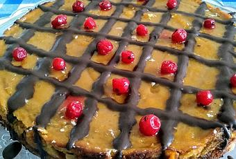 Rellena con la crema el molde con la pasta horneada y horneaa 200ºC durante 30 minutos. Saca del horno y unta una fina capa de mermelada de albaricoque por encima.