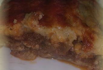 En una fuente de horno engrasada poner la mitad del puré de coliflor, poner a continuación otra capa de la mezcla de carne y verdura, y la última volverá a ser de coliflor. Coronar con el queso por encima y gratinar en el horno unos 15 minutos a 210ºC, hasta que burbujeen los bordes y el queso se gratine. ¡Y listo para comer!