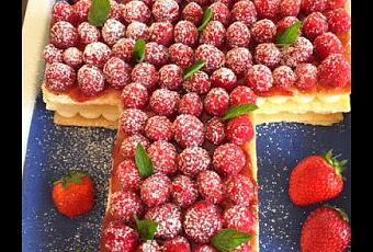 A Manu le encantan todas las frutas del bosque y a casa suelen venir a por alguna cajita de frambuesas, moras o arándanos. Las frambuesas no podían faltar y un motivo religioso y por eso hice la Cruz