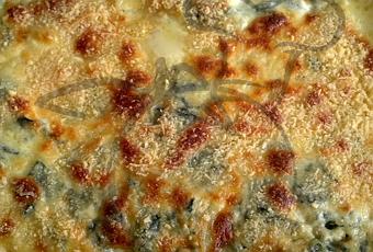 Esta salsa se mezcla con las espinacas y luego se agrega 2 huevos batidos. Verter esta mezcla en fuente para horno aceitado o enmantequillado. Si se quiere se puede poner sobre esta mezcla un poco de crema y queso parmesano rallado.