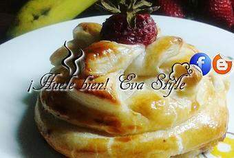 Este pastelito esta relleno de; requesón, plátano, fresas y miel.