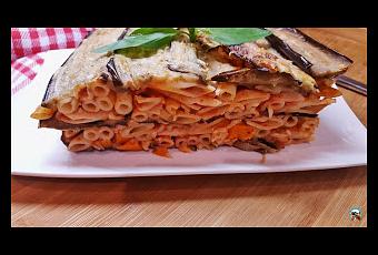 No lleva ni carne ni bechamel, un plato de macarrones pluma con salsa de tomate y verduras. Estamos en temporada de berenjenas y una buena manera de aprovecharlas es cocinarlas con una plato que siempre gusta como los macarrones, así de esta forma enseñaras a tus hijos a disfrutar de todo el sabor de las verduras y de sus ricas propiedades.