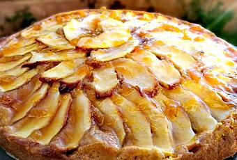 Ingredientes:- 4 manzanas- 2 huevos- 100 gr de azúcar moreno- 180 gr de harina- 1 sobre de levadura química- 175 ml de leche desnatada- mermelada de albaricoque