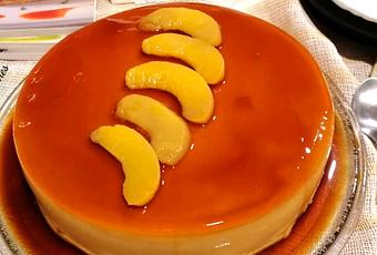 PASTEL DE MELOCOTÓN EN ALMÍBAR CON SOBAOS PASIEGOS Y CARAMELO