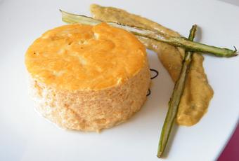 Repartimos la mezcla en 4 cuencos de soufflé previamente engrasados con mantequilla.